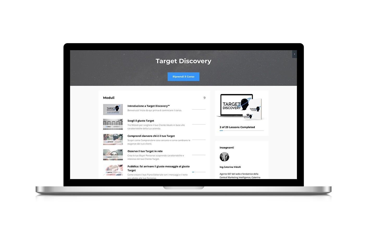 Il primo video corso in 26 Video lezioni suddivise in 6 Moduli che grazie al metodo S.C.O.P.R.I. ti permette di conoscere alla perfezione il tuo cliente target, per: